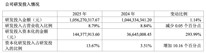 在营收微增的前提下,公司的多项费用开支均出现了不同幅度的缩减。2025年,丽珠集团的管理费用同比下降2.38%,研发费用下降9.23%至9.38亿元。